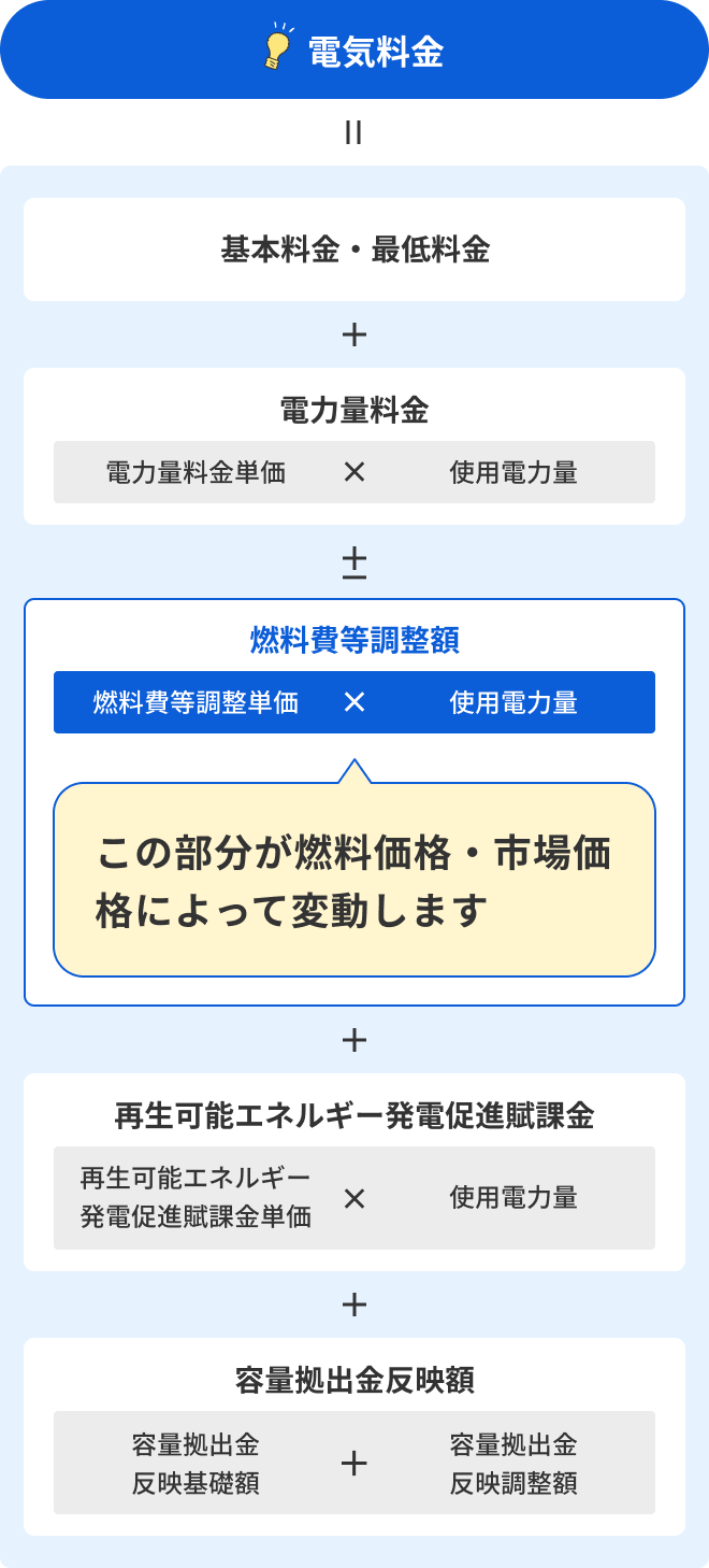 - ※当社の燃料費等調整額につきましては、燃料価格や市場価格の変動等に合わせて常に変動し、限定的な状況でのみ大幅な負担増の可能性がございます。